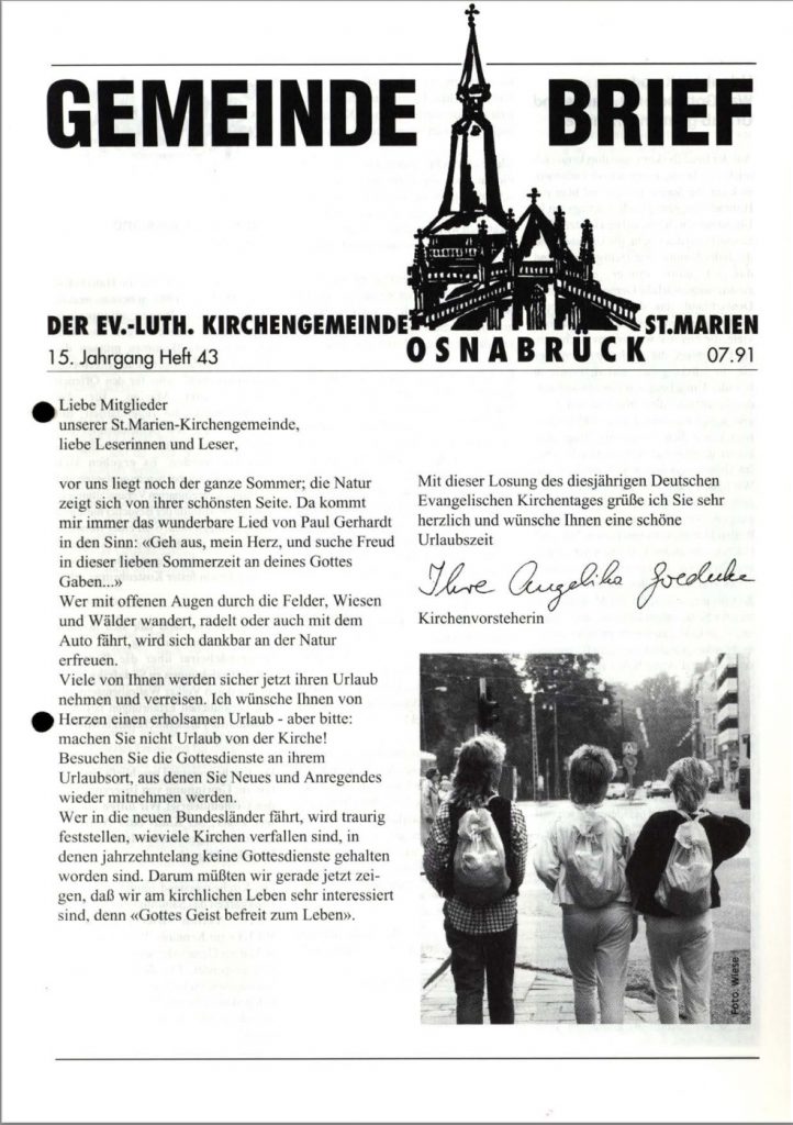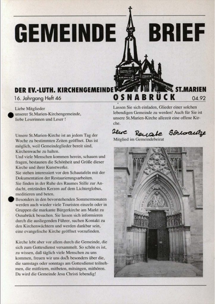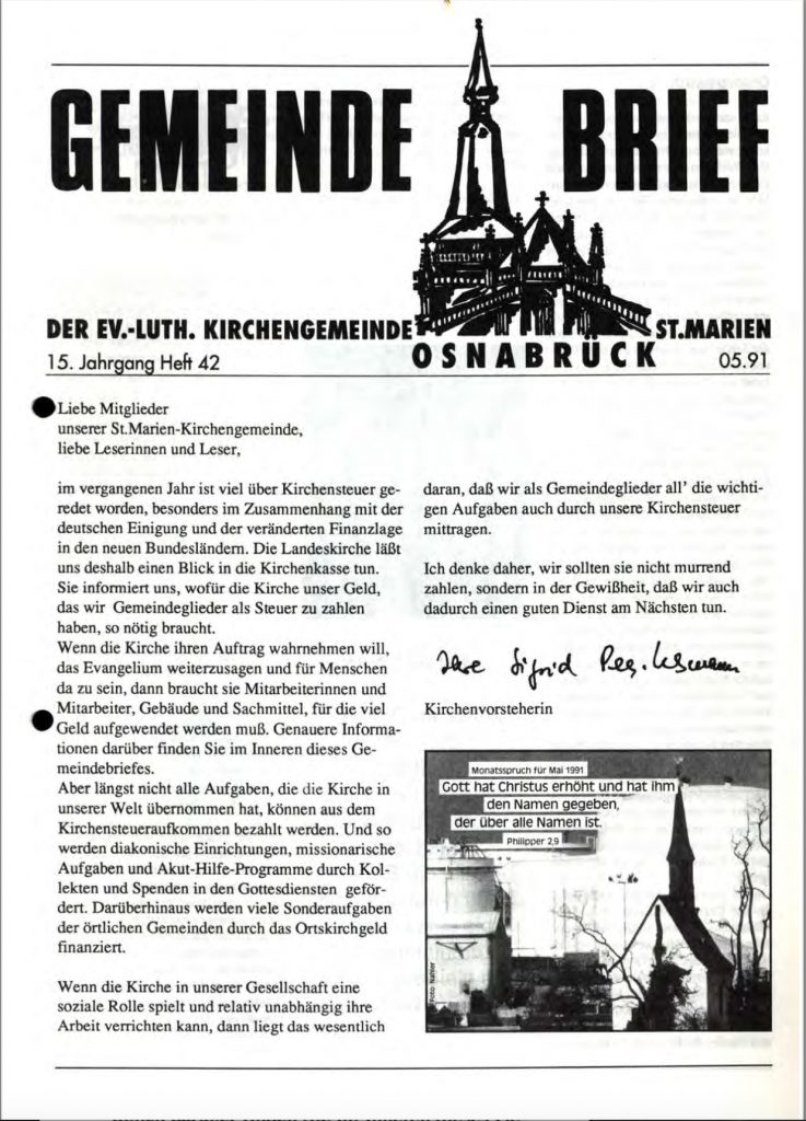 Der erste Gemeindebrief von St. Marien erschien 1977, mittlerweile gibt es 174 Ausgaben. Die Ausgaben 1 bis 131 wurden nachträglich digitalisiert, seit Ausgabe 132 erscheint der Gemeindebrief sowohl in gedruckter wie auch digitaler Form.