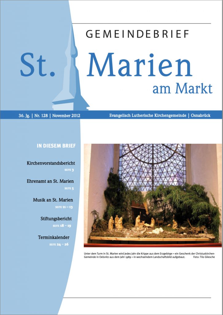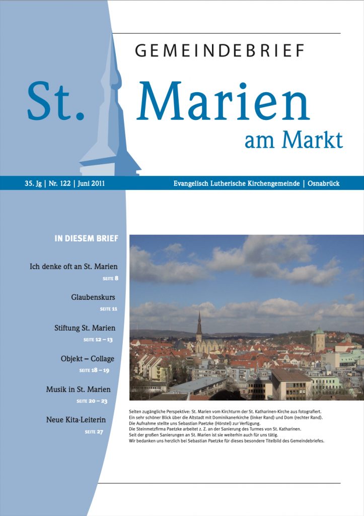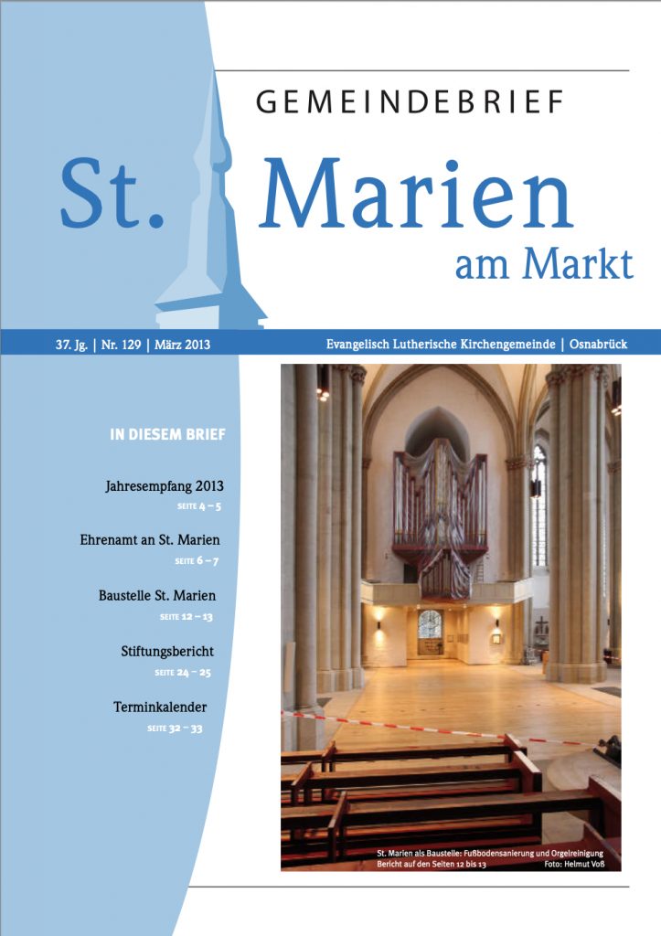 Der erste Gemeindebrief von St. Marien erschien 1977, mittlerweile gibt es 174 Ausgaben. Die Ausgaben 1 bis 131 wurden nachträglich digitalisiert, seit Ausgabe 132 erscheint der Gemeindebrief sowohl in gedruckter wie auch digitaler Form.