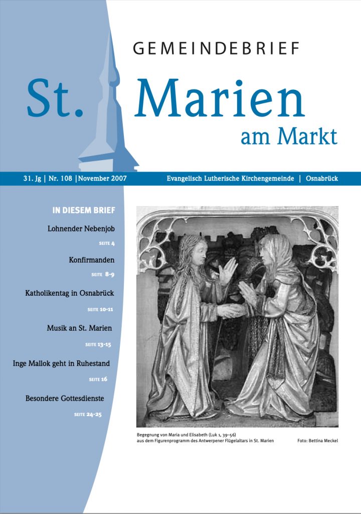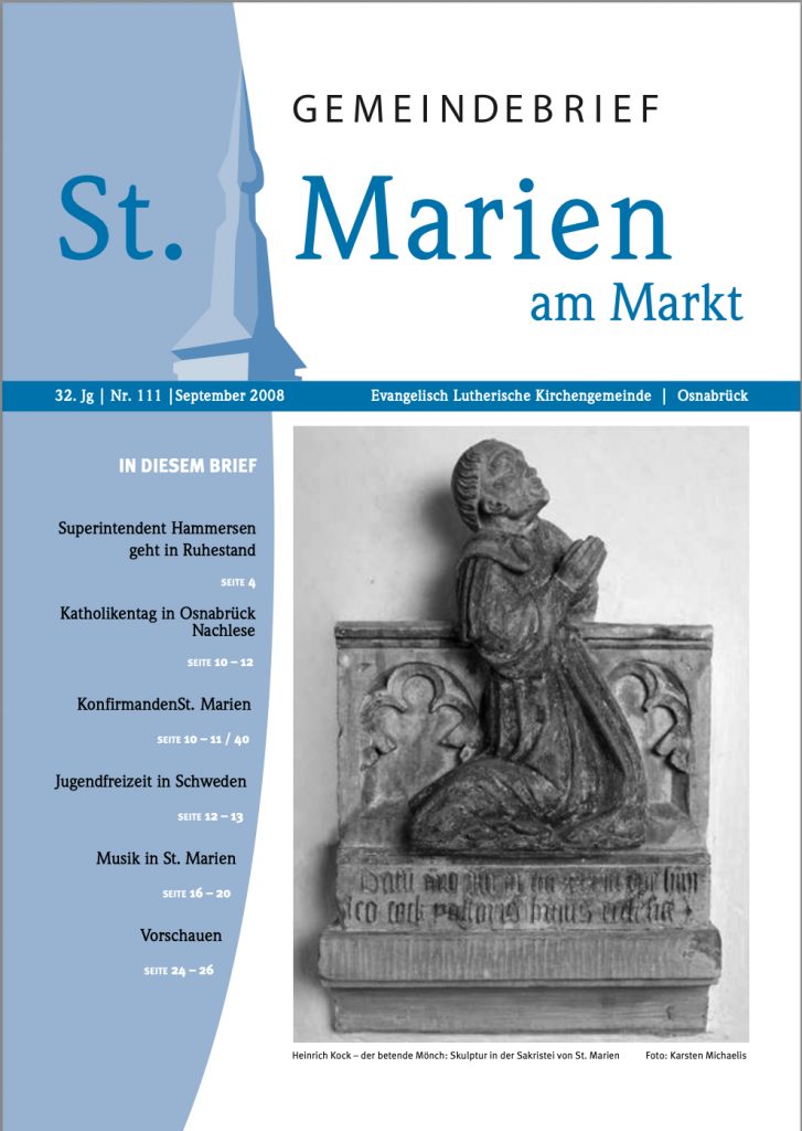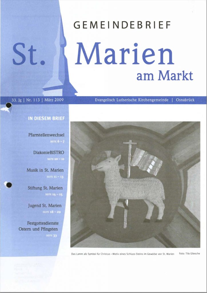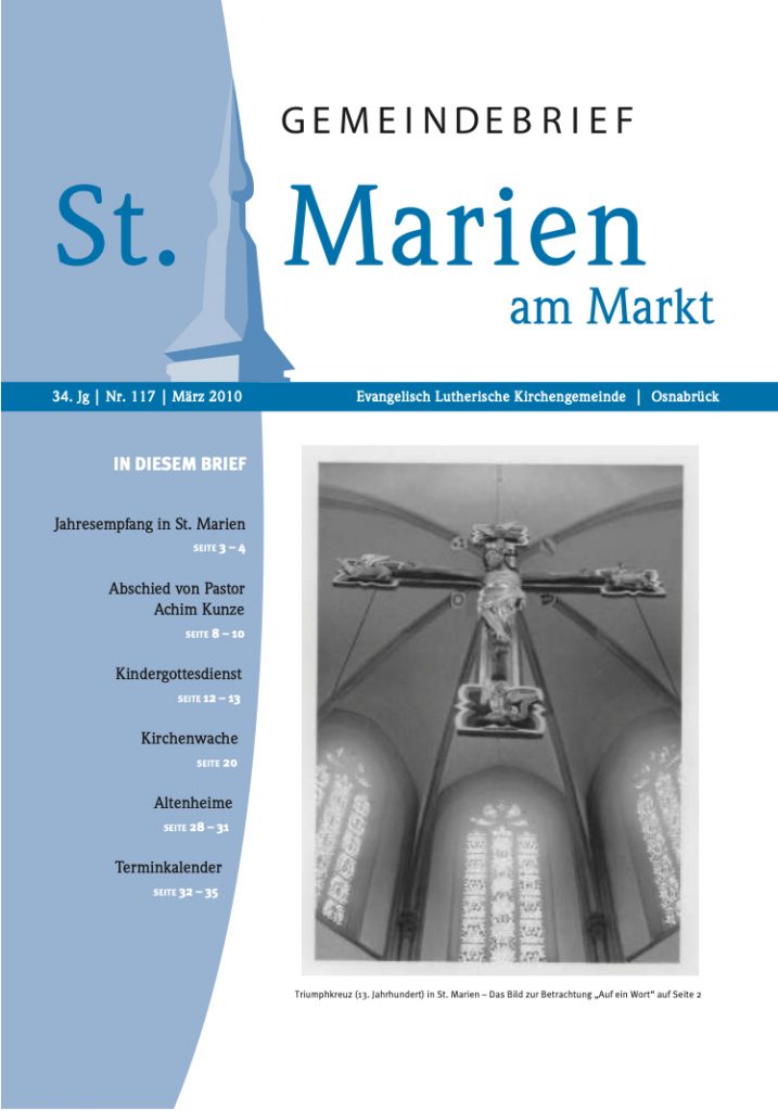 Im Gemeindebrief-Archiv können Sie nach älteren Gemeindebriefausgaben suchen und sich so über das Gemeindeleben wie auch die kulturellen Veranstaltungen in St. Marien in den letzten knapp fünfzig Jahren informieren.