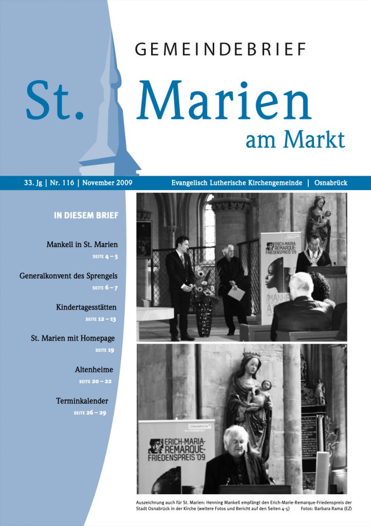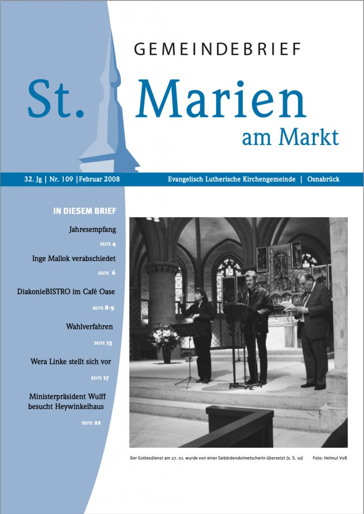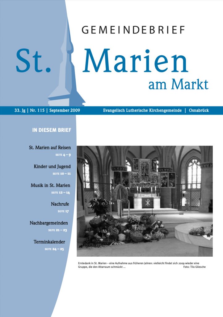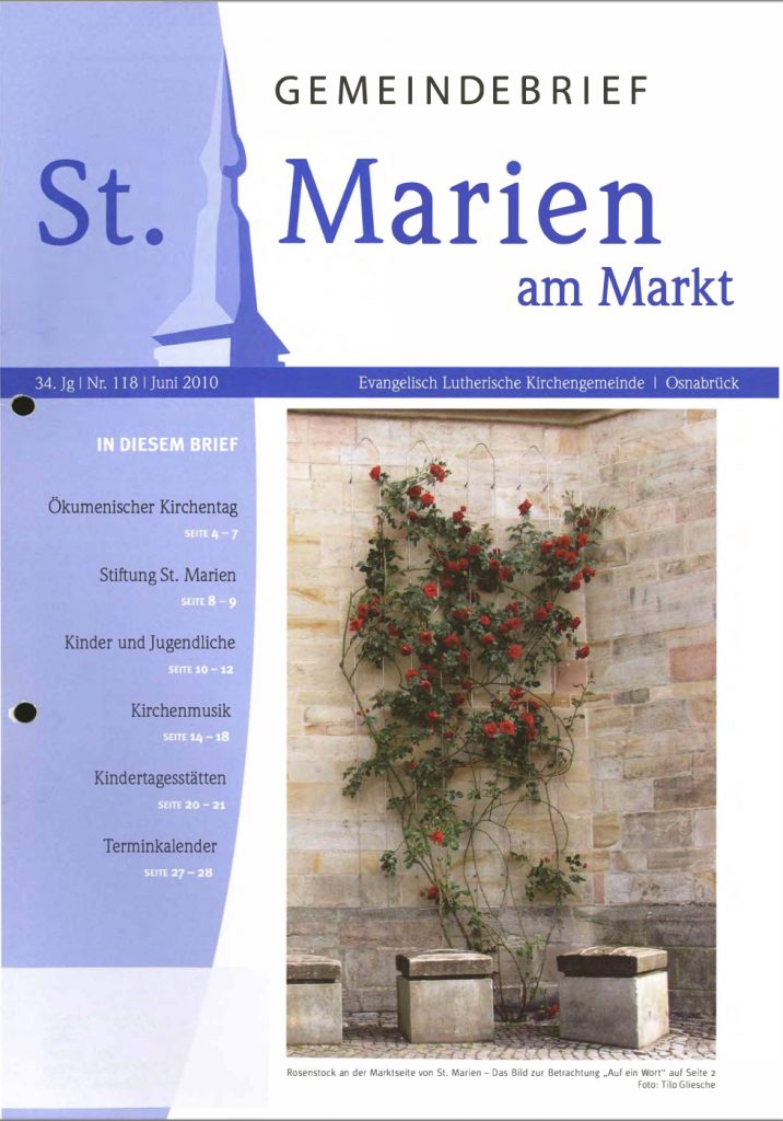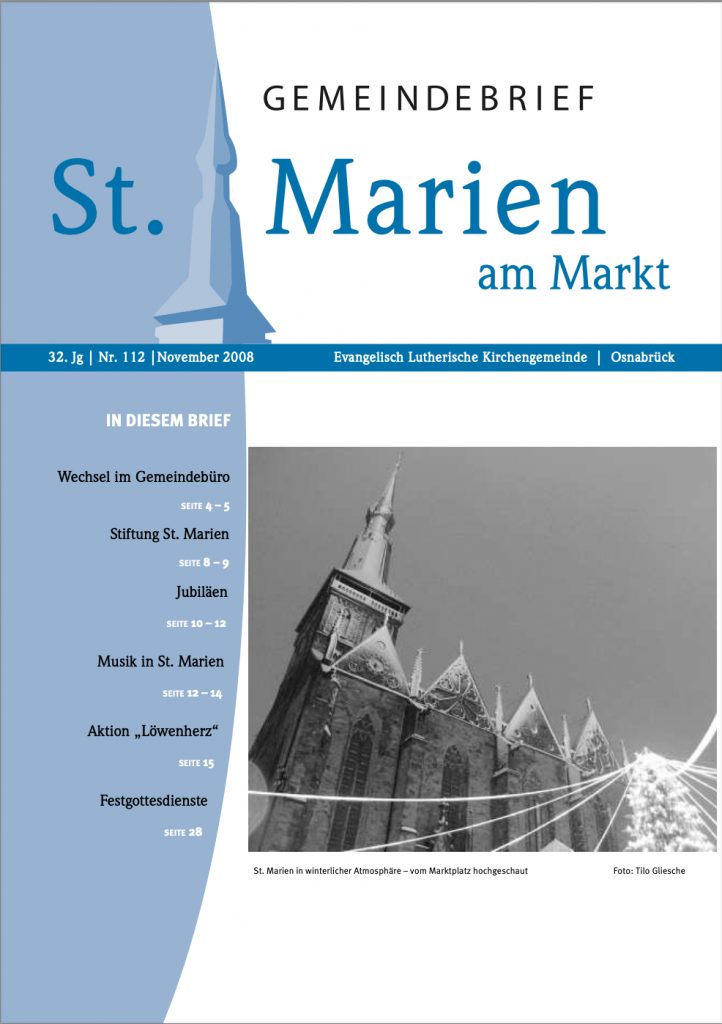 Der erste Gemeindebrief von St. Marien erschien 1977, mittlerweile gibt es 174 Ausgaben. Die Ausgaben 1 bis 131 wurden nachträglich digitalisiert, seit Ausgabe 132 erscheint der Gemeindebrief sowohl in gedruckter wie auch digitaler Form.